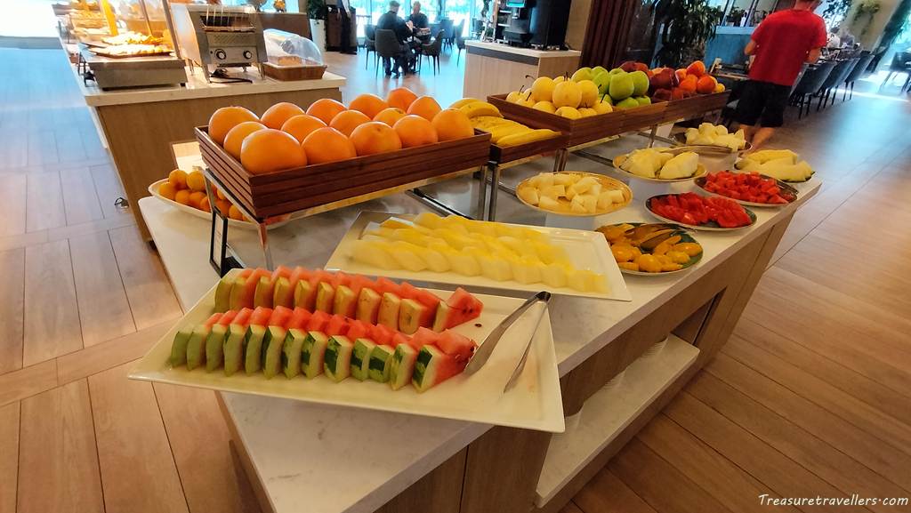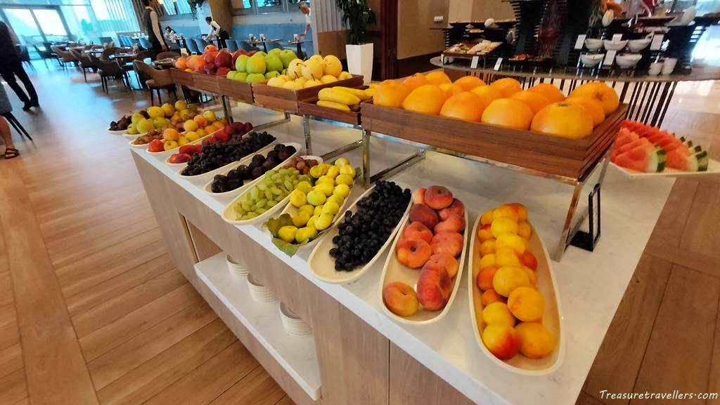 「ウズベキスタン料理が並ぶかと思いきや、実はサラダ、フルーツ、パンといった洋食スタイルの質と種類が非常に豊富。海外からのゲストを意識した安定感のあるラインナップです。」