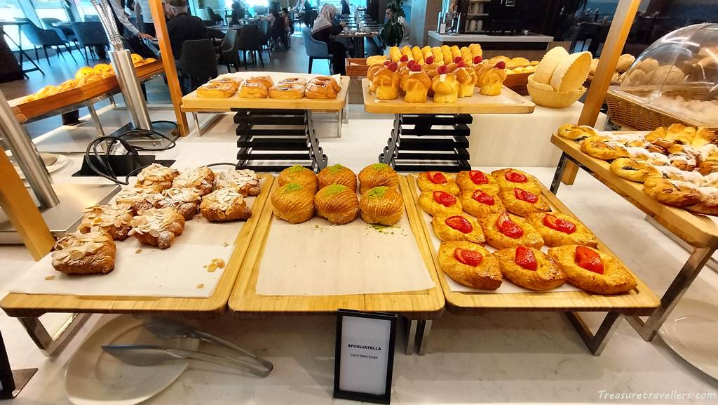 市場で売られている大きな丸パンが有名なウズベキスタンですが、こちらヒルトン・タシュケントシティでは、洋風なデニッシュやタルトなどオシャレなパンがたっくさん!