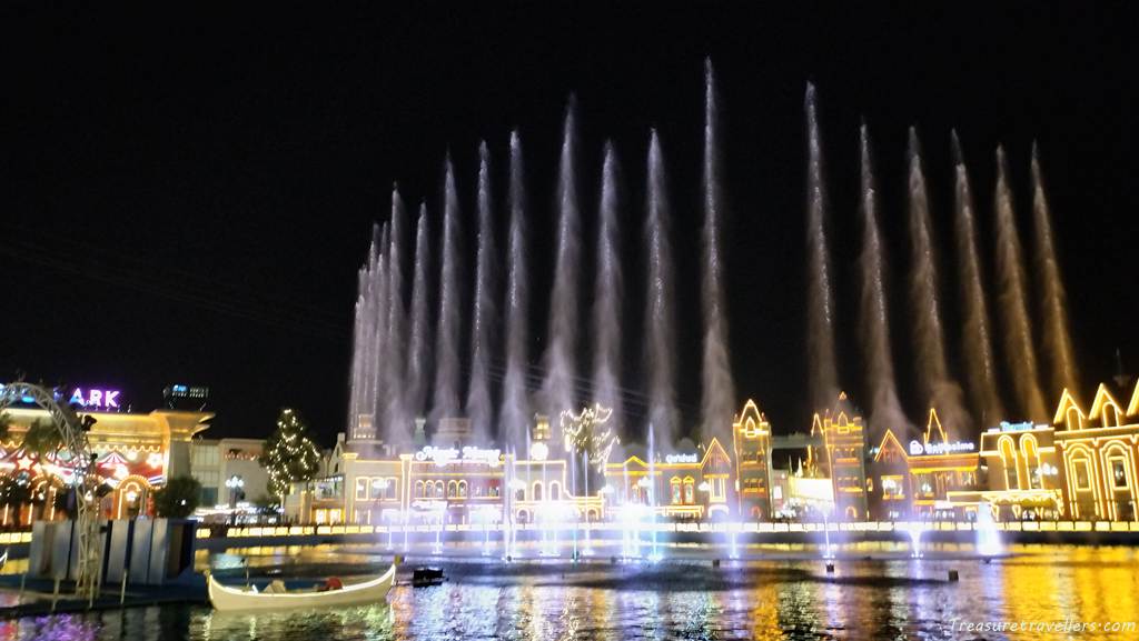 異国情緒たっぷりのミュージックに合わせて噴水が高く上がります。
