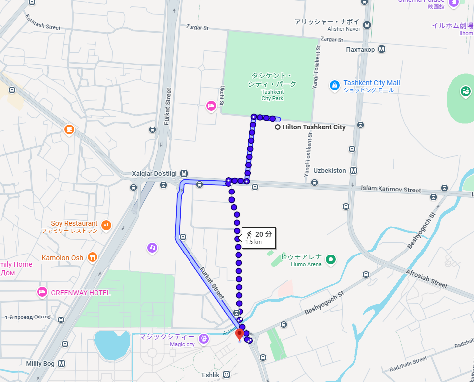 ヒルトン·タシュケントからは、ほぼまっすぐ南へ1.5km。