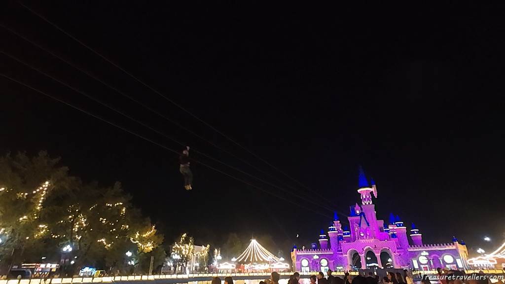 なんと、お城から海の上を渡るジップラインがあるのです!