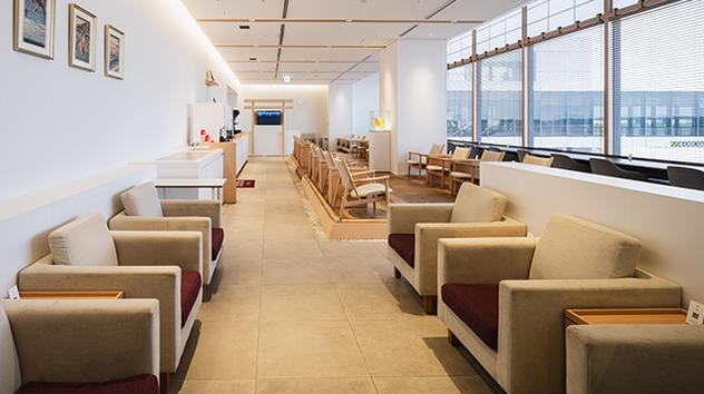 ラウンジは、保安検査の手前、ランドサイド2階のフードコートエリアにあります。