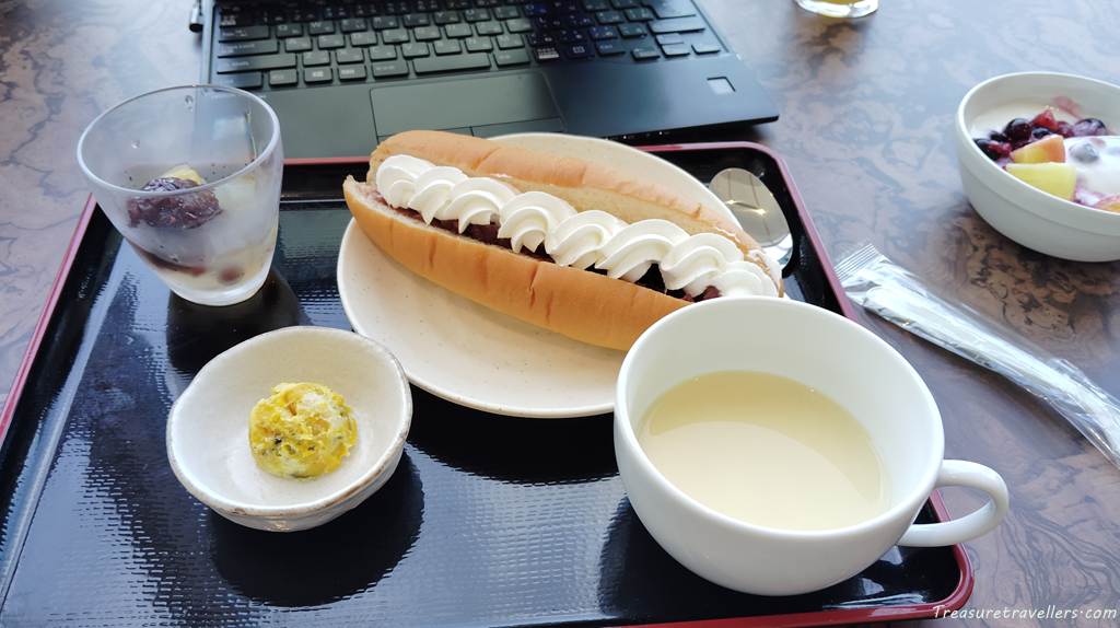 ホイップ入りあんトーストとあんみつを頼みました。