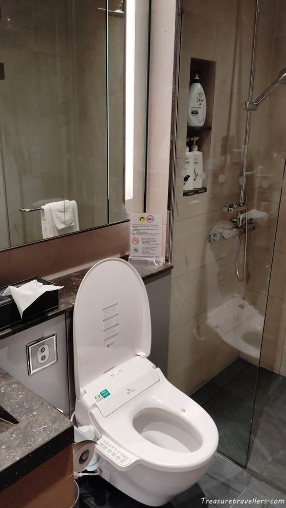 シャワーブースの脇にはウォシュレット付きのトイレがありました。