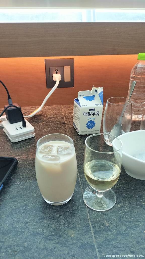 お酒コーナーにカルーアリキュールがあったので、食事コーナーにあった牛乳を使ってカルーアミルクをいただきました。
